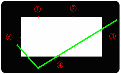 啟動QuickMeasuring測量軟件,在工具欄選擇測量工具, (矩形)。在視頻區(qū)進行取點測量。 注意:1、在第一條邊上去兩個點。2、取點要按照第一條邊取點的方向,依次在其他邊上取點。 正確的方法:(按照順序取點)